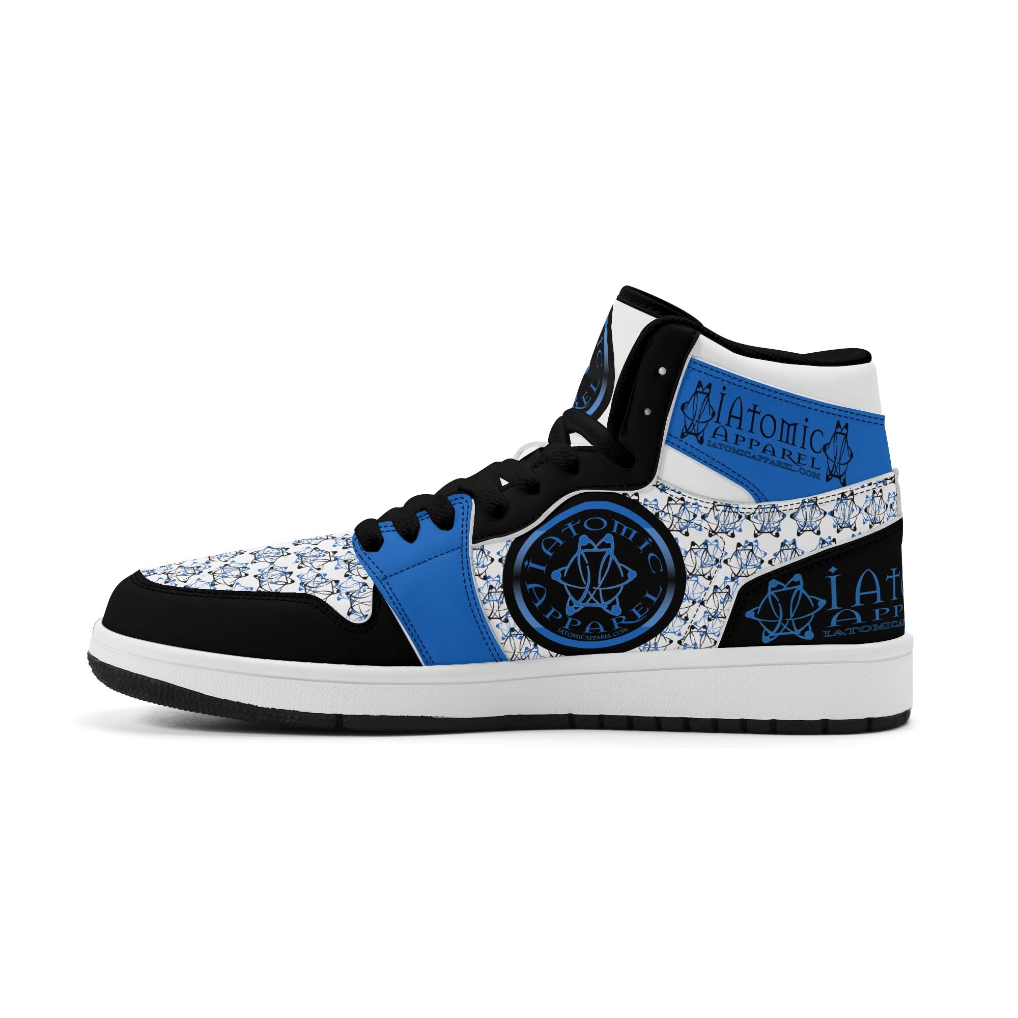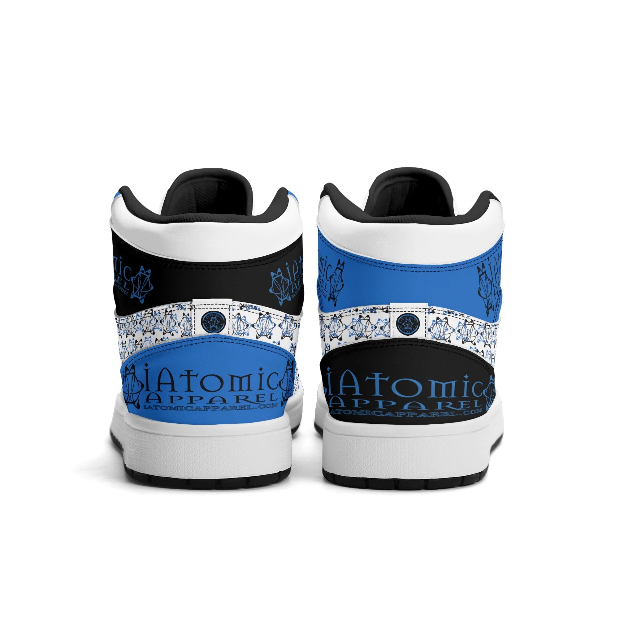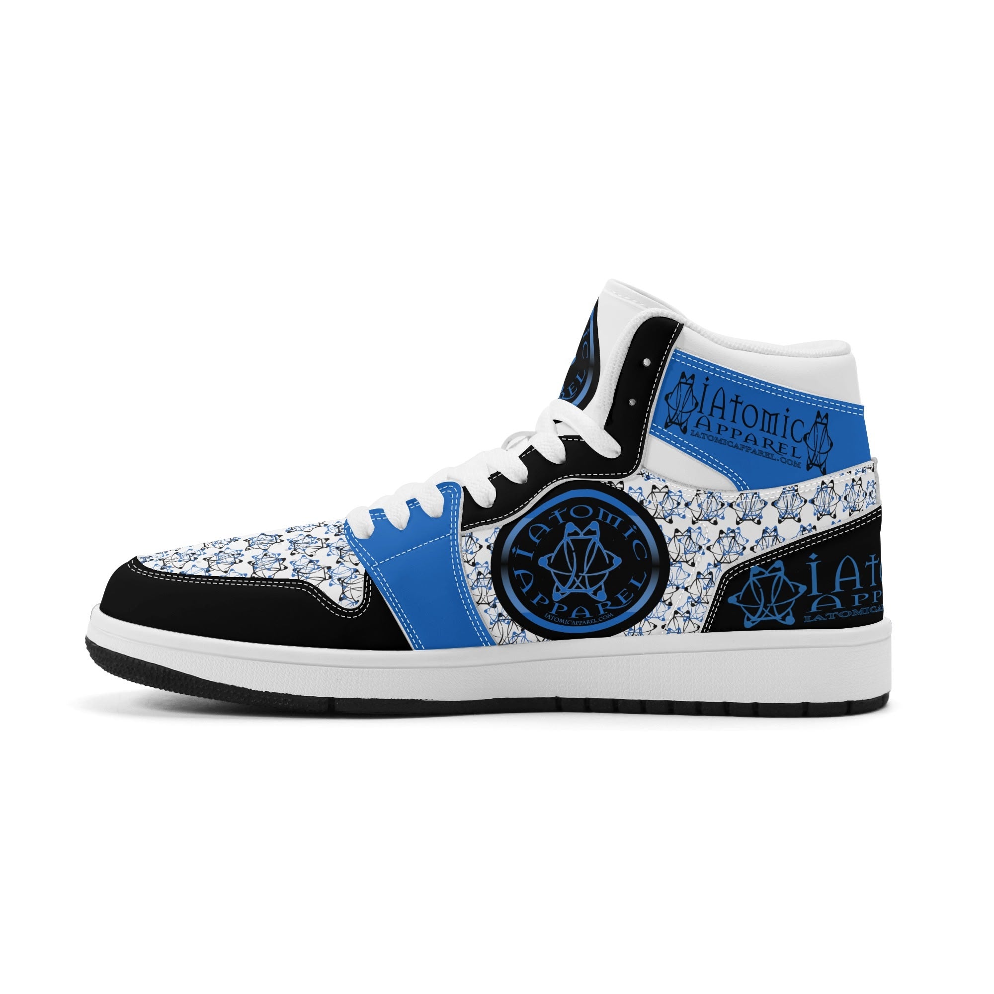 IAtomic Apparel’s White Infamous Blue True and Living Airs 3s luxury high top basketball style shoes are the perfect compliment for whatever occasion you choose. Be it, casual sport, business sport or, formal sport adding IAtomic Apparel’s White Infamous Blue True and Living Airs 3s will take your look to the next level. Want to be the looking student on the yard? IAtomic Apparel’s White Infamous Blue True and Living Airs 3s are the shoes for you! Our eco-friendly vegan leather designs takes old school design into the new school world.
