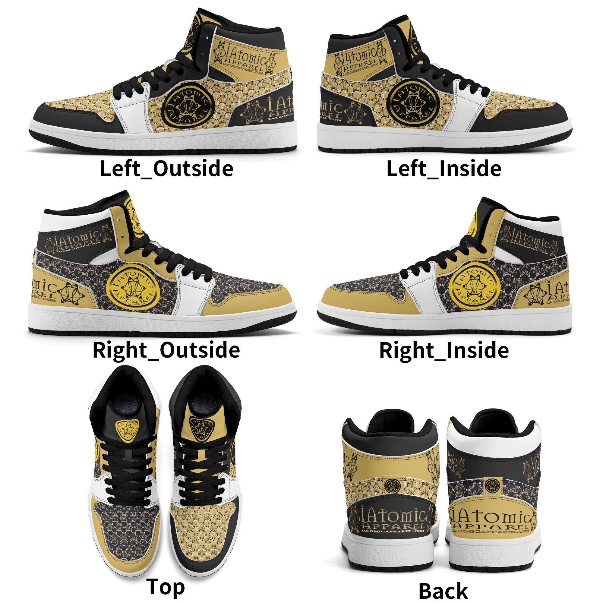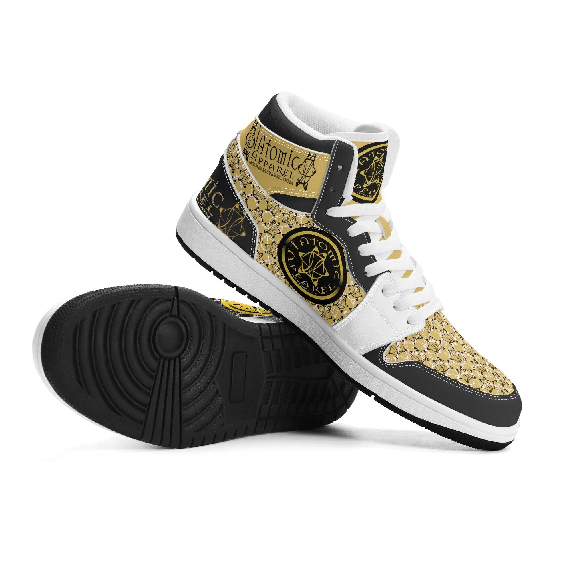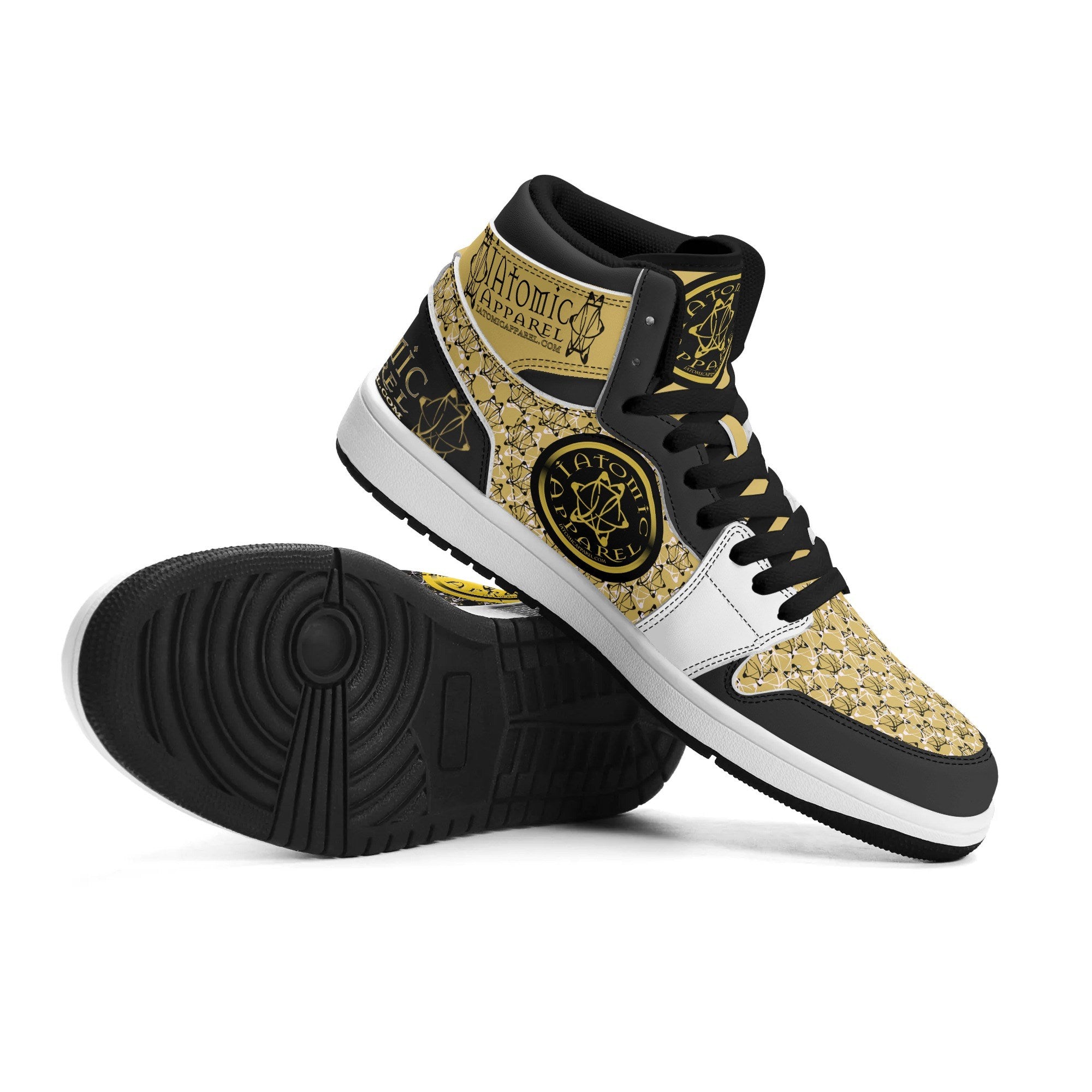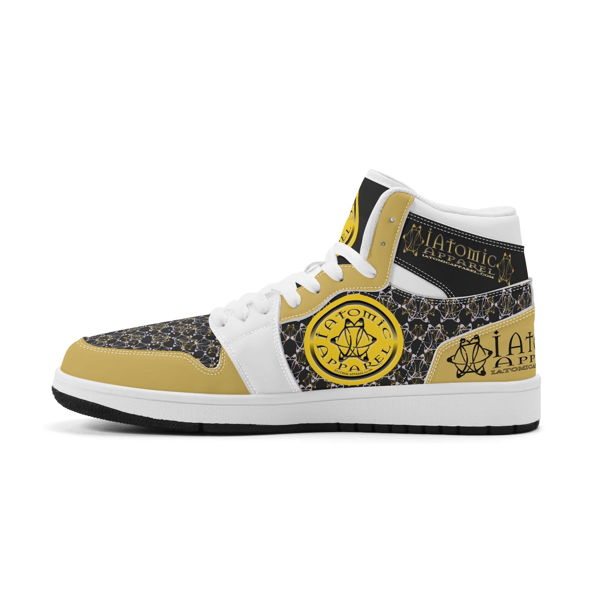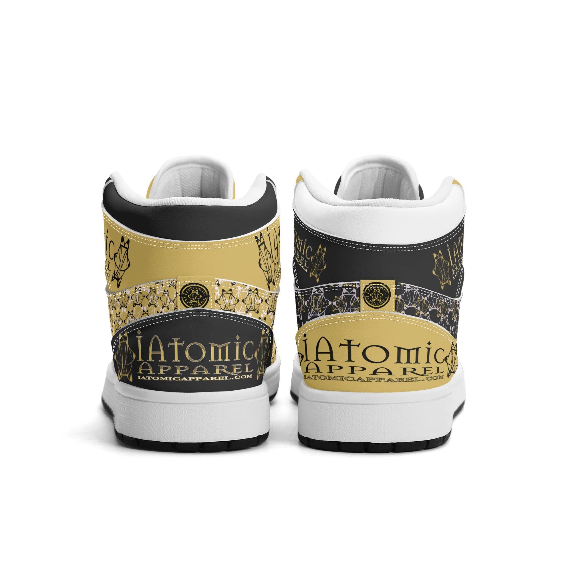 IAtomic Apparel’s Gold Standard True and Living Airs 3s luxury high top basketball style shoes are the perfect compliment for whatever occasion you choose. Be it, casual sport, business sport or, formal sport adding IAtomic Apparel’s Gold Standard True and Living Airs 3s will take your look to the next level. Want to be the looking student on the yard? IAtomic Apparel’s Gold Standard True and Living Airs 3s are the shoes for you! Our eco-friendly vegan leather designs takes old school design into the new school world.