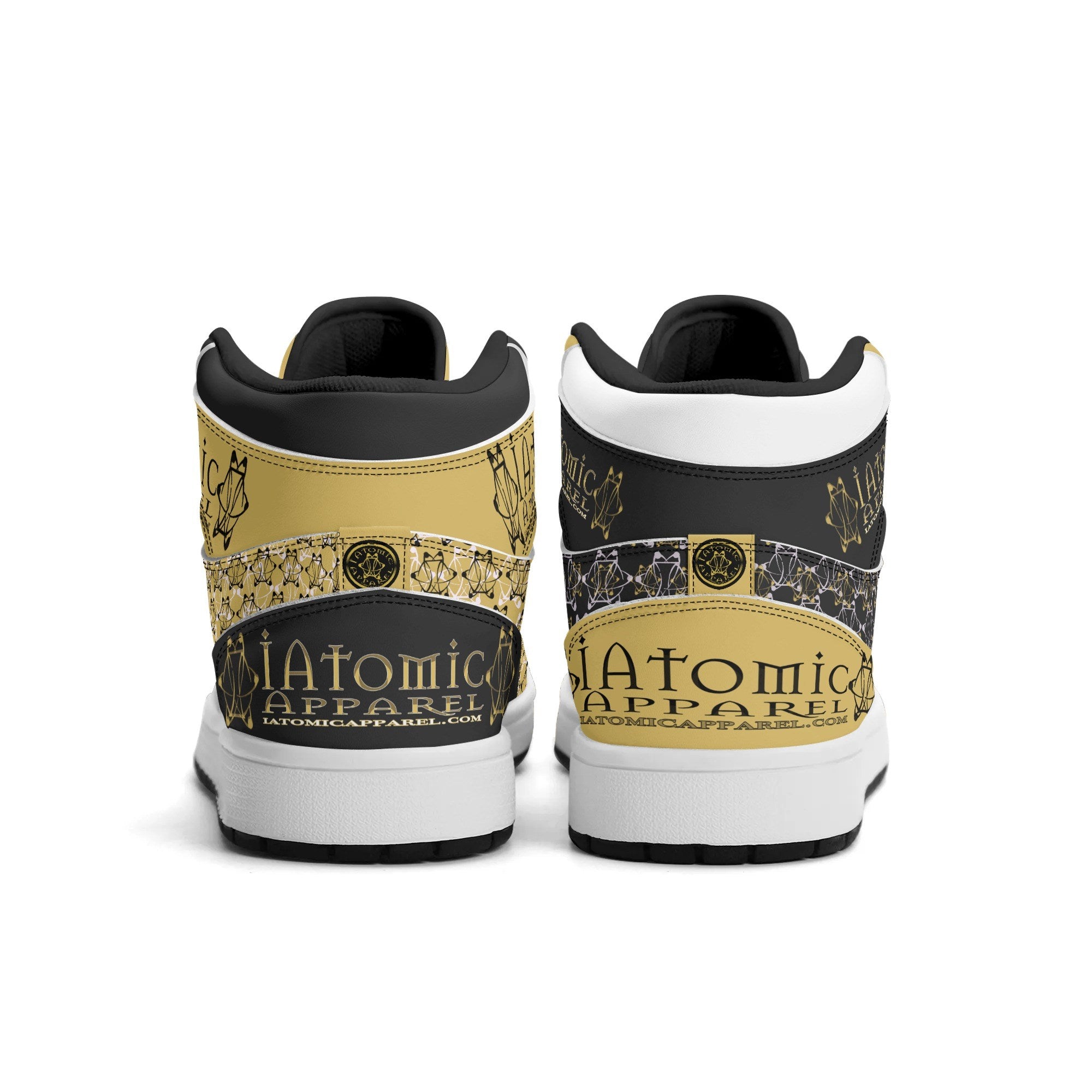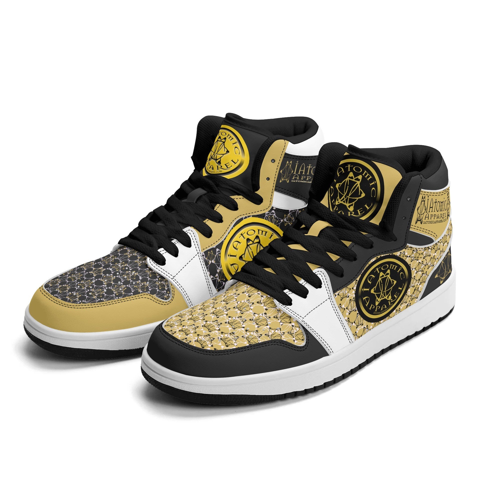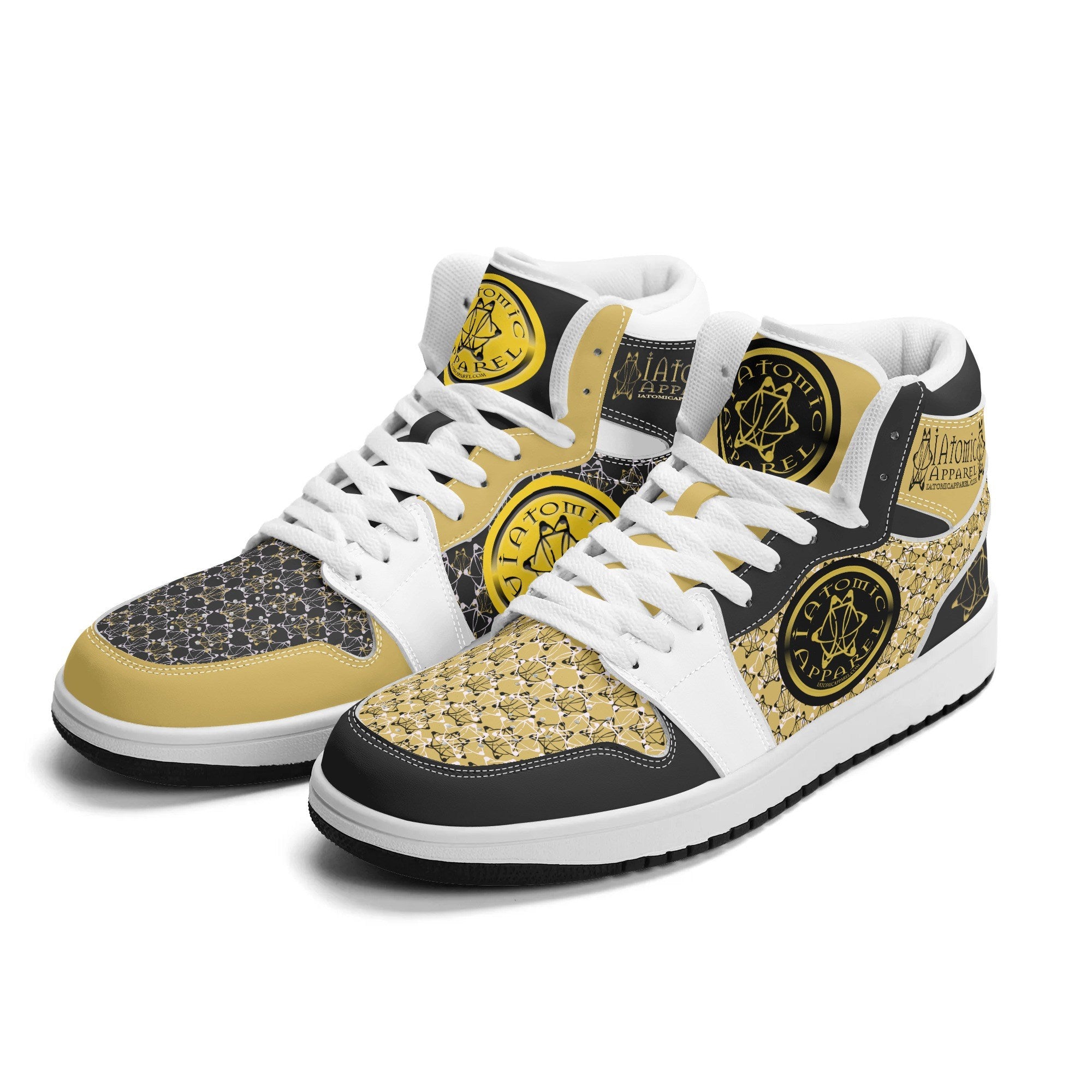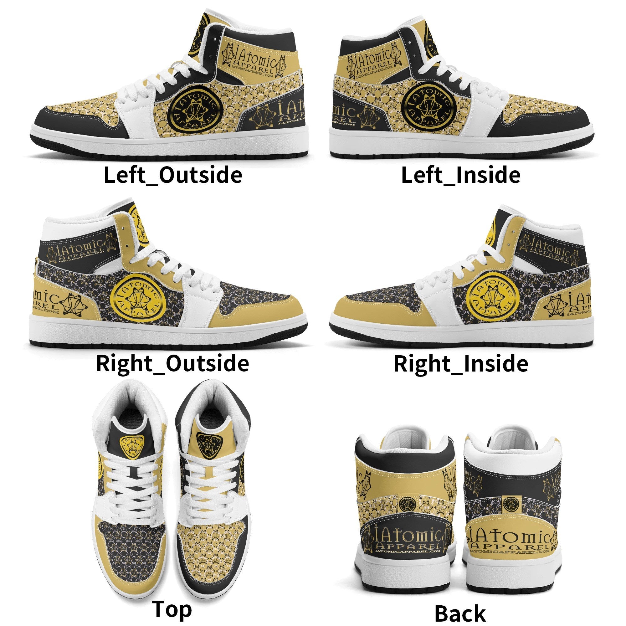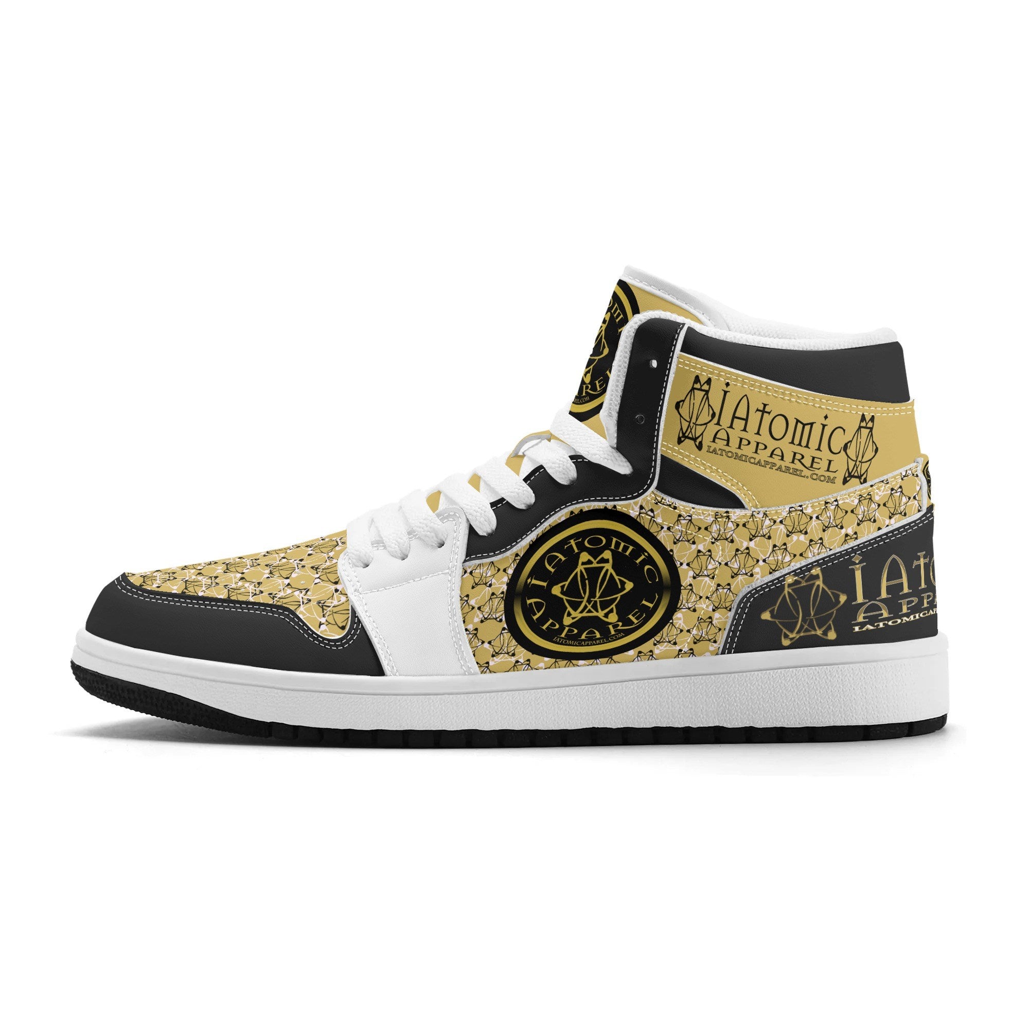 IAtomic Apparel’s Gold Standard True and Living Airs 3s luxury high top basketball style shoes are the perfect compliment for whatever occasion you choose. Be it, casual sport, business sport or, formal sport adding IAtomic Apparel’s Gold Standard True and Living Airs 3s will take your look to the next level. Want to be the looking student on the yard? IAtomic Apparel’s Gold Standard True and Living Airs 3s are the shoes for you! Our eco-friendly vegan leather designs takes old school design into the new school world.